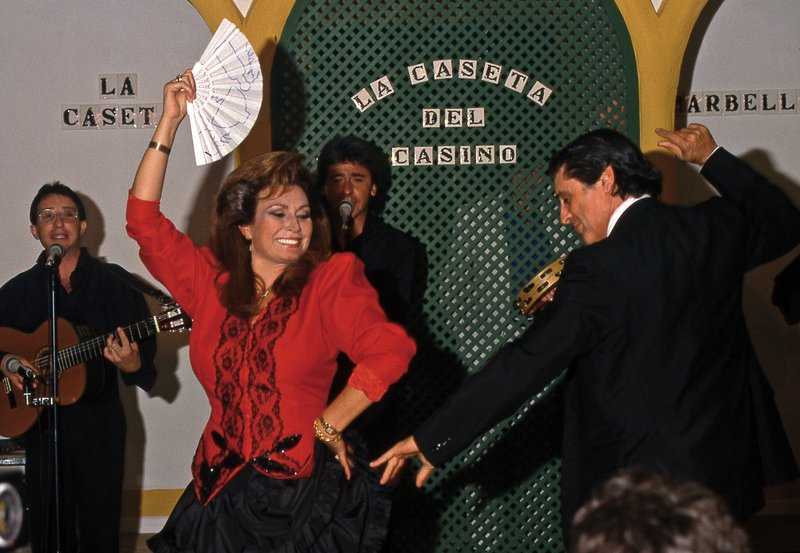 She fell in love with a boxer, Pedro Carrasco, and they were married in the Shrine of the Virgen de Regla, the patron saint of the town and the virgin she was especially devoted to. In the Plaza del Santuario, in front of 7000 people, Rocío Jurado gave a tremendous performance for her town accompanied by the Malaga Philharmonic Orchestra with Enrique de Melchor on the guitar. From her house in Avenida de Regla, every 8 September, along with her family, she would watch the procession of the Virgen de Regla.